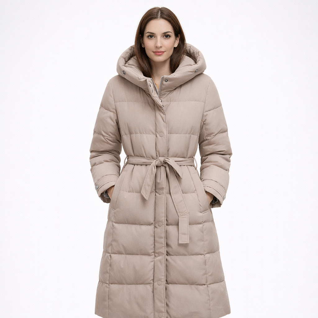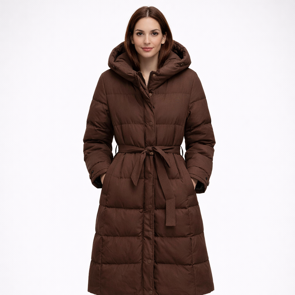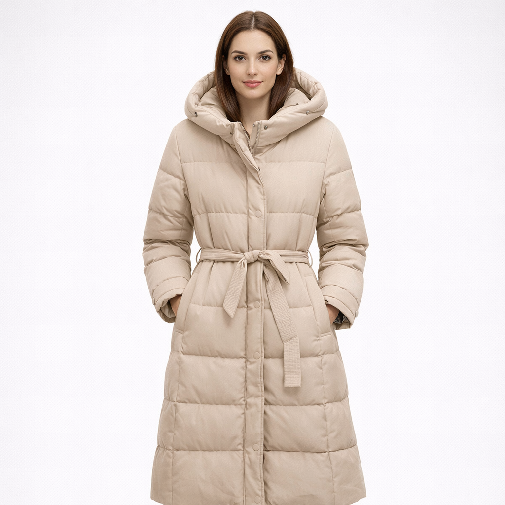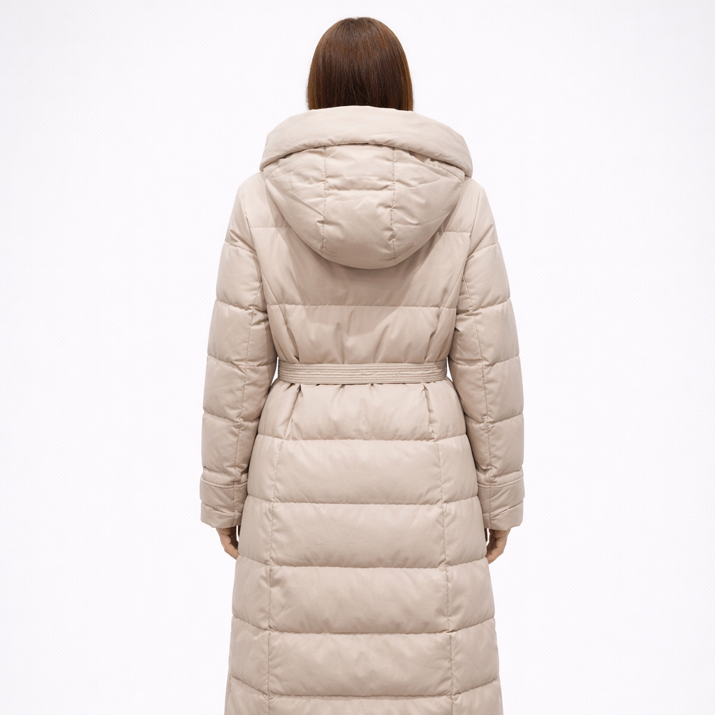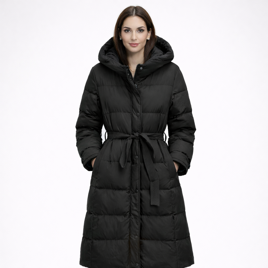 - Langer Steppmantel mit Kapuze